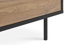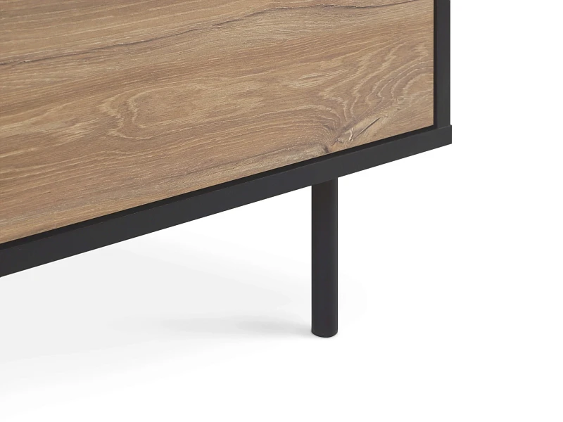 Система открывания дверей - Push-to-Open («нажал-открыл»). Соединительная фурнитура – Hettich. Материалы корпуса и фасада – ЛДСтП толщиной 16 мм. Опоры – металлические, окрашенные черной эмалью, высотой 160 мм, диаметром 20 мм, с пластиковыми подпятниками. Тумбу рекомендуется крепить к стене для защиты от опрокидывания (крепежи входят в комплект).
