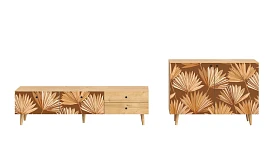 Корпусная мебель, с которой можно составить множество решений для гостиной, детской, кухни, спальни, прихожей, рабочей зоны. Комоды, шкафы, тумбы, столы, витрины, полки, серванты характеризуются универсальностью, многозадачностью, надёжными устойчивыми конструкциями. Имеют выразительный внешний вид, вдохновленный направлением ретро. Смотрятся легко и воздушно за счет деревянных ножек, минимального количества декоративных элементов, спокойных природных оттенков. Их можно использовать в качестве систем хранения, элементов для зонирования, фокусных точек. В дизайне ярко выражена доминанта прямых форм, графичности, лаконичных линий и элегантного исполнения. Что даёт пространству ощущение размеренности, сбалансированности, упорядоченности. Подходят интерьерам как с нейтральной базой, так и локациям с интенсивными цветовыми блоками. Индивидуальности добавят модели с оригинальными паттернами на фасадах. Предметы коллекции Frida гармонично впишутся в эклектичные и стилизованные интерьеры. Ручки входят в стоимость изделия. Высота опор 160 мм. Изображение, нанесенное на фасады, устойчиво к выцветанию, истиранию и влаге. Однако длительное воздействие воды, различных растворителей, спиртосодержащих жидкостей и высоких температур, увеличивают риск повреждения целостности покрытия. Поэтому при использовании необходимо соблюдать ряд правил: 1. Протирайте поверхность с рисунком влажной (но не мокрой) тканью. 2. Используйте мягкие ткани, например, салфетки для стекла или зеркал. 3. Не используйте для обработки поверхности с нанесенным на нее рисунком чистящие порошки и средства, в состав которых входят ацетон, растворитель или спирт. 4. Не используйте металлические губки и щетки с жесткой щетиной. 5. Избегайте ударов, падения, царапания, трения изделий с фотопечатью.