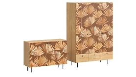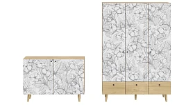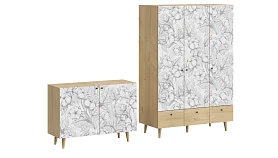 Корпусная мебель, с которой можно составить множество решений для гостиной, детской, кухни, спальни, прихожей, рабочей зоны. Комоды, шкафы, тумбы, столы, витрины, полки, серванты характеризуются универсальностью, многозадачностью, надёжными устойчивыми конструкциями. Имеют выразительный внешний вид, вдохновленный направлением ретро. Смотрятся легко и воздушно за счет деревянных ножек, минимального количества декоративных элементов, спокойных природных оттенков.