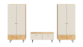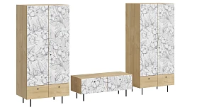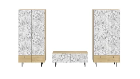 Корпусная мебель, с которой можно составить множество решений для гостиной, детской, кухни, спальни, прихожей, рабочей зоны. Комоды, шкафы, тумбы, столы, витрины, полки, серванты характеризуются универсальностью, многозадачностью, надёжными устойчивыми конструкциями. Имеют выразительный внешний вид, вдохновленный направлением ретро. Смотрятся легко и воздушно за счет деревянных ножек, минимального количества декоративных элементов, спокойных природных оттенков. Их можно использовать в качестве систем хранения, элементов для зонирования, фокусных точек. В дизайне ярко выражена доминанта прямых форм, графичности, лаконичных линий и элегантного исполнения. Что даёт пространству ощущение размеренности, сбалансированности, упорядоченности. Подходят интерьерам как с нейтральной базой, так и локациям с интенсивными цветовыми блоками. Индивидуальности добавят модели с оригинальными паттернами на фасадах. Предметы коллекции Frida гармонично впишутся в эклектичные и стилизованные интерьеры. Ручки входят в стоимость изделия. Высота опор 160 мм. Изображение, нанесенное на фасады, устойчиво к выцветанию, истиранию и влаге. Однако длительное воздействие воды, различных растворителей, спиртосодержащих жидкостей и высоких температур, увеличивают риск повреждения целостности покрытия. Поэтому при использовании необходимо соблюдать ряд правил: 1. Протирайте поверхность с рисунком влажной (но не мокрой) тканью. 2. Используйте мягкие ткани, например, салфетки для стекла или зеркал. 3. Не используйте для обработки поверхности с нанесенным на нее рисунком чистящие порошки и средства, в состав которых входят ацетон, растворитель или спирт. 4. Не используйте металлические губки и щетки с жесткой щетиной. 5. Избегайте ударов, падения, царапания, трения изделий с фотопечатью.