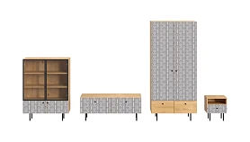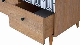 Корпусная мебель, с которой можно составить множество решений для гостиной, детской, кухни, спальни, прихожей, рабочей зоны. Комоды, шкафы, тумбы, столы, витрины, полки, серванты характеризуются универсальностью, многозадачностью, надёжными устойчивыми конструкциями. Имеют выразительный внешний вид, вдохновленный направлением ретро. Смотрятся легко и воздушно за счет деревянных ножек, минимального количества декоративных элементов, спокойных природных оттенков. Их можно использовать в качестве систем хранения, элементов для зонирования, фокусных точек. В дизайне ярко выражена доминанта прямых форм, графичности, лаконичных линий и элегантного исполнения. Что даёт пространству ощущение размеренности, сбалансированности, упорядоченности. Подходят интерьерам как с нейтральной базой, так и локациям с интенсивными цветовыми блоками. Индивидуальности добавят модели с оригинальными паттернами на фасадах. Предметы коллекции Frida гармонично впишутся в эклектичные и стилизованные интерьеры. Ручки входят в стоимость изделия. Высота опор 160 мм. Изображение, нанесенное на фасады, устойчиво к выцветанию, истиранию и влаге. Однако длительное воздействие воды, различных растворителей, спиртосодержащих жидкостей и высоких температур, увеличивают риск повреждения целостности покрытия. Поэтому при использовании необходимо соблюдать ряд правил: 1. Протирайте поверхность с рисунком влажной (но не мокрой) тканью. 2. Используйте мягкие ткани, например, салфетки для стекла или зеркал. 3. Не используйте для обработки поверхности с нанесенным на нее рисунком чистящие порошки и средства, в состав которых входят ацетон, растворитель или спирт. 4. Не используйте металлические губки и щетки с жесткой щетиной. 5. Избегайте ударов, падения, царапания, трения изделий с фотопечатью.