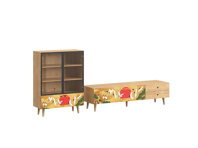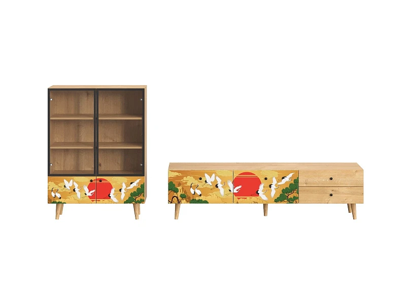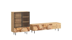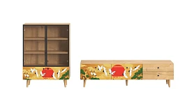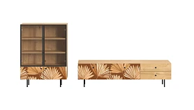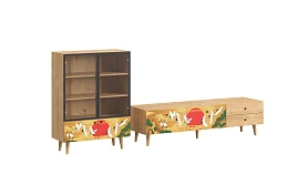 Корпусная мебель, с которой можно составить множество решений для гостиной, детской, кухни, спальни, прихожей, рабочей зоны. Комоды, шкафы, тумбы, столы, витрины, полки, серванты характеризуются универсальностью, многозадачностью, надёжными устойчивыми конструкциями. Имеют выразительный внешний вид, вдохновленный направлением ретро. Смотрятся легко и воздушно за счет деревянных ножек, минимального количества декоративных элементов, спокойных природных оттенков. Их можно использовать в качестве систем хранения, элементов для зонирования, фокусных точек. В дизайне ярко выражена доминанта прямых форм, графичности, лаконичных линий и элегантного исполнения. Что даёт пространству ощущение размеренности, сбалансированности, упорядоченности. Подходят интерьерам как с нейтральной базой, так и локациям с интенсивными цветовыми блоками. Индивидуальности добавят модели с оригинальными паттернами на фасадах. Предметы коллекции Frida гармонично впишутся в эклектичные и стилизованные интерьеры. Ручки входят в стоимость изделия. Высота опор 160 мм. Изображение, нанесенное на фасады, устойчиво к выцветанию, истиранию и влаге. Однако длительное воздействие воды, различных растворителей, спиртосодержащих жидкостей и высоких температур, увеличивают риск повреждения целостности покрытия. Поэтому при использовании необходимо соблюдать ряд правил: 1. Протирайте поверхность с рисунком влажной (но не мокрой) тканью. 2. Используйте мягкие ткани, например, салфетки для стекла или зеркал. 3. Не используйте для обработки поверхности с нанесенным на нее рисунком чистящие порошки и средства, в состав которых входят ацетон, растворитель или спирт. 4. Не используйте металлические губки и щетки с жесткой щетиной. 5. Избегайте ударов, падения, царапания, трения изделий с фотопечатью.