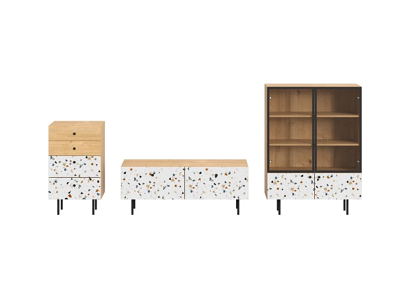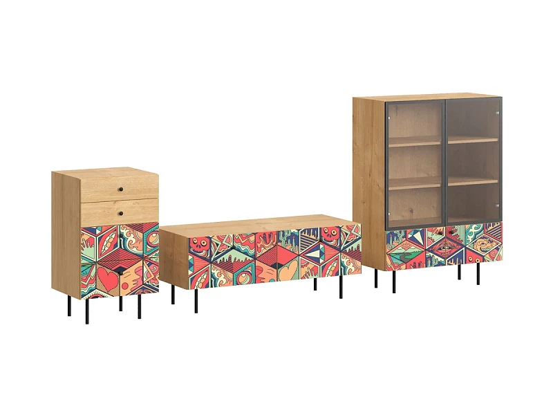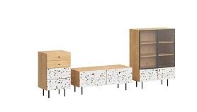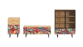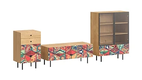 Корпусная мебель, с которой можно составить множество решений для гостиной, детской, кухни, спальни, прихожей, рабочей зоны. Комоды, шкафы, тумбы, столы, витрины, полки, серванты характеризуются универсальностью, многозадачностью, надёжными устойчивыми конструкциями. Имеют выразительный внешний вид, вдохновленный направлением ретро. Смотрятся легко и воздушно за счет деревянных ножек, минимального количества декоративных элементов, спокойных природных оттенков. Их можно использовать в качестве систем хранения, элементов для зонирования, фокусных точек. В дизайне ярко выражена доминанта прямых форм, графичности, лаконичных линий и элегантного исполнения. Что даёт пространству ощущение размеренности, сбалансированности, упорядоченности. Подходят интерьерам как с нейтральной базой, так и локациям с интенсивными цветовыми блоками. Индивидуальности добавят модели с оригинальными паттернами на фасадах. Предметы коллекции Frida гармонично впишутся в эклектичные и стилизованные интерьеры. Ручки входят в стоимость изделия. Высота опор 160 мм. Изображение, нанесенное на фасады, устойчиво к выцветанию, истиранию и влаге. Однако длительное воздействие воды, различных растворителей, спиртосодержащих жидкостей и высоких температур, увеличивают риск повреждения целостности покрытия. Поэтому при использовании необходимо соблюдать ряд правил: 1. Протирайте поверхность с рисунком влажной (но не мокрой) тканью. 2. Используйте мягкие ткани, например, салфетки для стекла или зеркал. 3. Не используйте для обработки поверхности с нанесенным на нее рисунком чистящие порошки и средства, в состав которых входят ацетон, растворитель или спирт. 4. Не используйте металлические губки и щетки с жесткой щетиной. 5. Избегайте ударов, падения, царапания, трения изделий с фотопечатью.