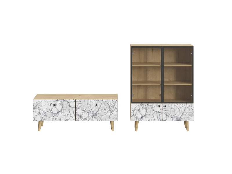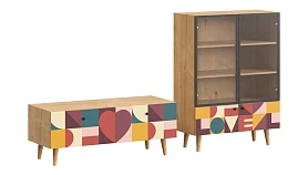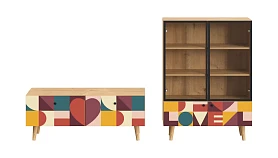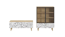 Корпусная мебель, с которой можно составить множество решений для гостиной, детской, кухни, спальни, прихожей, рабочей зоны. Комоды, шкафы, тумбы, столы, витрины, полки, серванты характеризуются универсальностью, многозадачностью, надёжными устойчивыми конструкциями. Имеют выразительный внешний вид, вдохновленный направлением ретро. Смотрятся легко и воздушно за счет деревянных ножек, минимального количества декоративных элементов, спокойных природных оттенков. Их можно использовать в качестве систем хранения, элементов для зонирования, фокусных точек. В дизайне ярко выражена доминанта прямых форм, графичности, лаконичных линий и элегантного исполнения. Что даёт пространству ощущение размеренности, сбалансированности, упорядоченности. Подходят интерьерам как с нейтральной базой, так и локациям с интенсивными цветовыми блоками. Индивидуальности добавят модели с оригинальными паттернами на фасадах. Предметы коллекции Frida гармонично впишутся в эклектичные и стилизованные интерьеры. Ручки входят в стоимость изделия. Высота опор 160 мм. Изображение, нанесенное на фасады, устойчиво к выцветанию, истиранию и влаге. Однако длительное воздействие воды, различных растворителей, спиртосодержащих жидкостей и высоких температур, увеличивают риск повреждения целостности покрытия. Поэтому при использовании необходимо соблюдать ряд правил: 1. Протирайте поверхность с рисунком влажной (но не мокрой) тканью. 2. Используйте мягкие ткани, например, салфетки для стекла или зеркал. 3. Не используйте для обработки поверхности с нанесенным на нее рисунком чистящие порошки и средства, в состав которых входят ацетон, растворитель или спирт. 4. Не используйте металлические губки и щетки с жесткой щетиной. 5. Избегайте ударов, падения, царапания, трения изделий с фотопечатью.