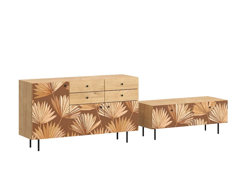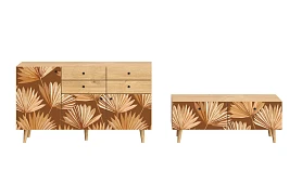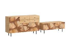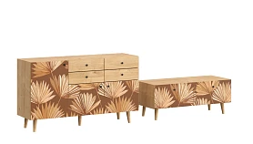 Корпусная мебель, с которой можно составить множество решений для гостиной, детской, кухни, спальни, прихожей, рабочей зоны. Комоды, шкафы, тумбы, столы, витрины, полки, серванты характеризуются универсальностью, многозадачностью, надёжными устойчивыми конструкциями. Имеют выразительный внешний вид, вдохновленный направлением ретро. Смотрятся легко и воздушно за счет деревянных ножек, минимального количества декоративных элементов, спокойных природных оттенков. Их можно использовать в качестве систем хранения, элементов для зонирования, фокусных точек. В дизайне ярко выражена доминанта прямых форм, графичности, лаконичных линий и элегантного исполнения. Что даёт пространству ощущение размеренности, сбалансированности, упорядоченности. Подходят интерьерам как с нейтральной базой, так и локациям с интенсивными цветовыми блоками. Индивидуальности добавят модели с оригинальными паттернами на фасадах. Предметы коллекции Frida гармонично впишутся в эклектичные и стилизованные интерьеры. Ручки входят в стоимость изделия. Высота опор 160 мм. Изображение, нанесенное на фасады, устойчиво к выцветанию, истиранию и влаге. Однако длительное воздействие воды, различных растворителей, спиртосодержащих жидкостей и высоких температур, увеличивают риск повреждения целостности покрытия. Поэтому при использовании необходимо соблюдать ряд правил: 1. Протирайте поверхность с рисунком влажной (но не мокрой) тканью. 2. Используйте мягкие ткани, например, салфетки для стекла или зеркал. 3. Не используйте для обработки поверхности с нанесенным на нее рисунком чистящие порошки и средства, в состав которых входят ацетон, растворитель или спирт. 4. Не используйте металлические губки и щетки с жесткой щетиной. 5. Избегайте ударов, падения, царапания, трения изделий с фотопечатью.