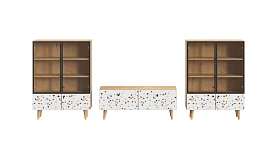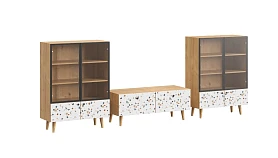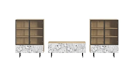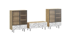 Корпусная мебель, с которой можно составить множество решений для гостиной, детской, кухни, спальни, прихожей, рабочей зоны. Комоды, шкафы, тумбы, столы, витрины, полки, серванты характеризуются универсальностью, многозадачностью, надёжными устойчивыми конструкциями. Имеют выразительный внешний вид, вдохновленный направлением ретро. Смотрятся легко и воздушно за счет деревянных ножек, минимального количества декоративных элементов, спокойных природных оттенков. Их можно использовать в качестве систем хранения, элементов для зонирования, фокусных точек. В дизайне ярко выражена доминанта прямых форм, графичности, лаконичных линий и элегантного исполнения. Что даёт пространству ощущение размеренности, сбалансированности, упорядоченности. Подходят интерьерам как с нейтральной базой, так и локациям с интенсивными цветовыми блоками. Индивидуальности добавят модели с оригинальными паттернами на фасадах. Предметы коллекции Frida гармонично впишутся в эклектичные и стилизованные интерьеры. Ручки входят в стоимость изделия. Высота опор 160 мм. Изображение, нанесенное на фасады, устойчиво к выцветанию, истиранию и влаге. Однако длительное воздействие воды, различных растворителей, спиртосодержащих жидкостей и высоких температур, увеличивают риск повреждения целостности покрытия. Поэтому при использовании необходимо соблюдать ряд правил: 1. Протирайте поверхность с рисунком влажной (но не мокрой) тканью. 2. Используйте мягкие ткани, например, салфетки для стекла или зеркал. 3. Не используйте для обработки поверхности с нанесенным на нее рисунком чистящие порошки и средства, в состав которых входят ацетон, растворитель или спирт. 4. Не используйте металлические губки и щетки с жесткой щетиной. 5. Избегайте ударов, падения, царапания, трения изделий с фотопечатью.
