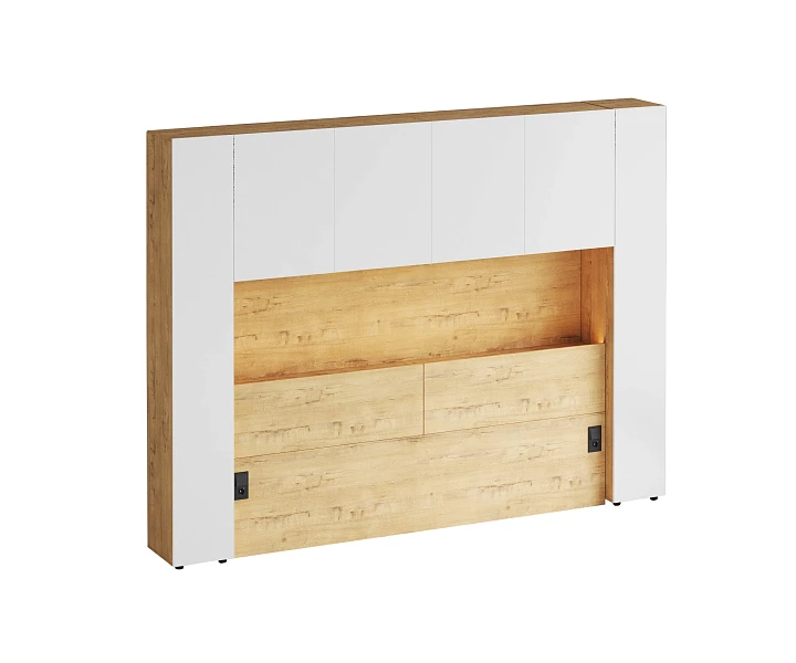 Линейка корпусной мебели, которая закрывает большинство потребностей по хранению и организации вещей. Универсальные и функциональные шкафы, тумбы, стеллажи, столы группируются по функциональны зонам. С их помощью можно обустроить прихожую, гостиную, кабинет, спальню, детскую. В основе дизайна — софт-минимализм с продуманными деталями и материалами. Скрытые механизмы открытия дверей, естественная древесная текстура, большая вместительность, белый цвет делают их исключительно удачными для большинства современных пространств. Гладкие фасады без декора и ручек поддерживают идею отказа от визуального шума, двери открываются по принципу «нажал-открыл». Мебель Modus создает уравновешенный интерьер с выразительными компонентами, настраивающими на ритмичный образ жизни, целеустремленность и чувство свободы от избыточных деталей. Кроватный блок предназначен для использования совместно с кроватью или диваном. Блок имеет два отделения за откидными дверьми и открытую полку над ними. Двери открываются за кромку, с помощью газовых кронштейнов. Кроватный блок оснащен светодиодным светильником, расположенным на открытой верхней полке. Светильник представляет собой алюминиевый профиль с матовым экраном, внутри которого установлена светодиодная лента. С левой и с правой стороны переднего щита блока установлены выключатели светильника и эл. розетки с разъемами USB А и Type C. Блок установлен на регулируемые опоры. Внутренние размеры отделений для хранения: 1160х850х260мм каждое отделение. Максимальная нагрузка на верхнюю полку не должна превышать 20 кг. Панель представляет собой щит из ЛДСП 16 мм. предназначенный для установки над кроватным блоком. Панель навешивается на регулируемые подвесы. Шкаф имеет три регулируемых подвеса для навешивания на стену. Полки имеют возможность перестановки по высоте в трех уровнях. Дверь открывается по принципу «нажал-открыл». Максимальная нагрузка на каждую полку не должна превышать 7 кг. Пенал Modus состоит из корпуса и фасада. Корпус с проходным нижним и верхним щитом установлен на опоры. Опоры регулируемые, пластик черный, круглые. Корпус горизонтальной стенкой разделен на два отделения по высоте. Верхнее отделение оснащено одной съёмной полкой, нижнее – пятью съёмными полками. Полки 6 – съемные, с перестановкой по высоте в 3 положения. Максимальная нагрузка на одну полку не должна превышать 4кг. Фасад представляет собой распашную дверь, которая открывается по принципу «нажал-открыл». Установка двери возможна с открыванием как в левую, так и в правую сторону.