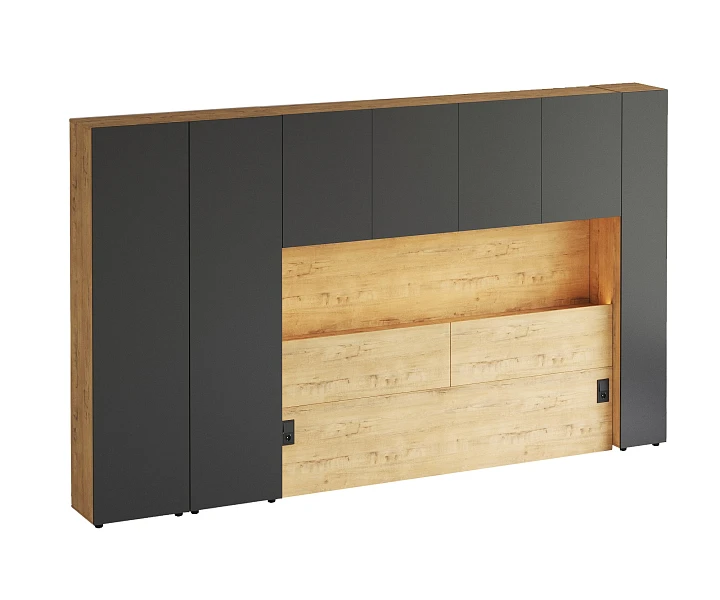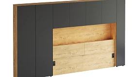Линейка корпусной мебели, которая закрывает большинство потребностей по хранению и организации вещей. Универсальные и функциональные шкафы, тумбы, стеллажи, столы группируются по функциональны зонам. С их помощью можно обустроить прихожую, гостиную, кабинет, спальню, детскую. В основе дизайна — софт-минимализм с продуманными деталями и материалами. Скрытые механизмы открытия дверей, естественная древесная текстура, большая вместительность, белый цвет делают их исключительно удачными для большинства современных пространств. Гладкие фасады без декора и ручек поддерживают идею отказа от визуального шума, двери открываются по принципу «нажал-открыл». Мебель Modus создает уравновешенный интерьер с выразительными компонентами, настраивающими на ритмичный образ жизни, целеустремленность и чувство свободы от избыточных деталей. Кроватный блок предназначен для использования совместно с кроватью или диваном. Блок имеет два отделения за откидными дверьми и открытую полку над ними. Двери открываются за кромку, с помощью газовых кронштейнов. Кроватный блок оснащен светодиодным светильником, расположенным на открытой верхней полке. Светильник представляет собой алюминиевый профиль с матовым экраном, внутри которого установлена светодиодная лента. С левой и с правой стороны переднего щита блока установлены выключатели светильника и эл. розетки с разъемами USB А и Type C. Блок установлен на регулируемые опоры. Внутренние размеры отделений для хранения: 1160х850х260мм каждое отделение. Максимальная нагрузка на верхнюю полку не должна превышать 20 кг. Панель представляет собой щит из ЛДСП 16 мм. предназначенный для установки над кроватным блоком. Панель навешивается на регулируемые подвесы. Шкаф имеет три регулируемых подвеса для навешивания на стену. Полки имеют возможность перестановки по высоте в трех уровнях. Дверь открывается по принципу «нажал-открыл». Максимальная нагрузка на каждую полку не должна превышать 7 кг. Пенал Modus состоит из корпуса и фасада. Корпус с проходным нижним и верхним щитом установлен на опоры. Опоры регулируемые, пластик черный, круглые. Корпус горизонтальной стенкой разделен на два отделения по высоте. Верхнее отделение оснащено одной съёмной полкой, нижнее – пятью съёмными полками. Полки 6 – съемные, с перестановкой по высоте в 3 положения. Максимальная нагрузка на одну полку не должна превышать 4кг. Фасад представляет собой распашную дверь, которая открывается по принципу «нажал-открыл». Установка двери возможна с открыванием как в левую, так и в правую сторону.