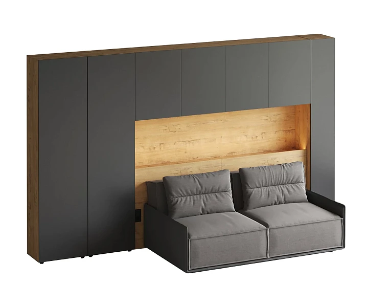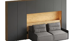 Линейка корпусной мебели, которая закрывает большинство потребностей по хранению и организации вещей. Универсальные и функциональные шкафы, тумбы, стеллажи, столы группируются по функциональны зонам. С их помощью можно обустроить прихожую, гостиную, кабинет, спальню, детскую. В основе дизайна — софт-минимализм с продуманными деталями и материалами. Скрытые механизмы открытия дверей, естественная древесная текстура, большая вместительность, белый цвет делают их исключительно удачными для большинства современных пространств. Гладкие фасады без декора и ручек поддерживают идею отказа от визуального шума, двери открываются по принципу «нажал-открыл». Мебель Modus создает уравновешенный интерьер с выразительными компонентами, настраивающими на ритмичный образ жизни, целеустремленность и чувство свободы от избыточных деталей. Кроватный блок предназначен для использования совместно с кроватью или диваном. Блок имеет два отделения за откидными дверьми и открытую полку над ними. Двери открываются за кромку, с помощью газовых кронштейнов. Кроватный блок оснащен светодиодным светильником, расположенным на открытой верхней полке. Светильник представляет собой алюминиевый профиль с матовым экраном, внутри которого установлена светодиодная лента. С левой и с правой стороны переднего щита блока установлены выключатели светильника и эл. розетки с разъемами USB А и Type C. Блок установлен на регулируемые опоры. Внутренние размеры отделений для хранения: 1160х850х260мм каждое отделение. Максимальная нагрузка на верхнюю полку не должна превышать 20 кг. Панель представляет собой щит из ЛДСП 16 мм. предназначенный для установки над кроватным блоком. Панель навешивается на регулируемые подвесы. Шкаф имеет три регулируемых подвеса для навешивания на стену. Полки имеют возможность перестановки по высоте в трех уровнях. Дверь открывается по принципу «нажал-открыл». Максимальная нагрузка на каждую полку не должна превышать 7 кг. Пенал Modus состоит из корпуса и фасада. Корпус с проходным нижним и верхним щитом установлен на опоры. Опоры регулируемые, пластик черный, круглые. Корпус горизонтальной стенкой разделен на два отделения по высоте. Верхнее отделение оснащено одной съёмной полкой, нижнее – пятью съёмными полками. Полки 6 – съемные, с перестановкой по высоте в 3 положения. Максимальная нагрузка на одну полку не должна превышать 4кг. Фасад представляет собой распашную дверь, которая открывается по принципу «нажал-открыл». Установка двери возможна с открыванием как в левую, так и в правую сторону. Диван входит в стоимость.