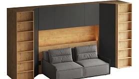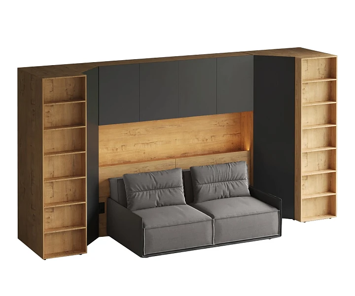 Линейка корпусной мебели, которая закрывает большинство потребностей по хранению и организации вещей. Универсальные и функциональные шкафы, тумбы, стеллажи, столы группируются по функциональны зонам. С их помощью можно обустроить прихожую, гостиную, кабинет, спальню, детскую. В основе дизайна — софт-минимализм с продуманными деталями и материалами. Скрытые механизмы открытия дверей, естественная древесная текстура, большая вместительность, белый цвет делают их исключительно удачными для большинства современных пространств. Гладкие фасады без декора и ручек поддерживают идею отказа от визуального шума, двери открываются по принципу «нажал-открыл». Мебель Modus создает уравновешенный интерьер с выразительными компонентами, настраивающими на ритмичный образ жизни, целеустремленность и чувство свободы от избыточных деталей. Кроватный блок предназначен для использования совместно с кроватью или диваном. Блок имеет два отделения за откидными дверьми и открытую полку над ними. Двери открываются за кромку, с помощью газовых кронштейнов. Кроватный блок оснащен светодиодным светильником, расположенным на открытой верхней полке. Светильник представляет собой алюминиевый профиль с матовым экраном, внутри которого установлена светодиодная лента. С левой и с правой стороны переднего щита блока установлены выключатели светильника и эл. розетки с разъемами USB А и Type C. Блок установлен на регулируемые опоры. Внутренние размеры отделений для хранения: 1160х850х260мм каждое отделение. Максимальная нагрузка на верхнюю полку не должна превышать 20 кг. Панель представляет собой щит из ЛДСП 16 мм. предназначенный для установки над кроватным блоком. Панель навешивается на регулируемые подвесы. Шкаф имеет три регулируемых подвеса для навешивания на стену. Полки имеют возможность перестановки по высоте в трех уровнях. Дверь открывается по принципу «нажал-открыл». Максимальная нагрузка на каждую полку не должна превышать 7 кг. Пенал Modus состоит из корпуса и фасада. Корпус с проходным нижним и верхним щитом установлен на опоры. Опоры регулируемые, пластик черный, круглые. Корпус горизонтальной стенкой разделен на два отделения по высоте. Верхнее отделение оснащено одной съёмной полкой, нижнее – пятью съёмными полками. Полки 6 – съемные, с перестановкой по высоте в 3 положения. Максимальная нагрузка на одну полку не должна превышать 4кг. Фасад представляет собой распашную дверь, которая открывается по принципу «нажал-открыл». Установка двери возможна с открыванием как в левую, так и в правую сторону. Диван входит в стоимость.