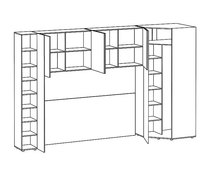 Линейка корпусной мебели, которая закрывает большинство потребностей по хранению и организации вещей. Универсальные и функциональные шкафы, тумбы, стеллажи, столы группируются по функциональны зонам. С их помощью можно обустроить прихожую, гостиную, кабинет, спальню, детскую. В основе дизайна — софт-минимализм с продуманными деталями и материалами. Скрытые механизмы открытия дверей, естественная древесная текстура, большая вместительность, белый цвет делают их исключительно удачными для большинства современных пространств. Гладкие фасады без декора и ручек поддерживают идею отказа от визуального шума, двери открываются по принципу «нажал-открыл». Мебель Modus создает уравновешенный интерьер с выразительными компонентами, настраивающими на ритмичный образ жизни, целеустремленность и чувство свободы от избыточных деталей. Кроватный блок предназначен для использования совместно с кроватью или диваном. Блок имеет два отделения за откидными дверьми и открытую полку над ними. Двери открываются за кромку, с помощью газовых кронштейнов. Кроватный блок оснащен светодиодным светильником, расположенным на открытой верхней полке. Светильник представляет собой алюминиевый профиль с матовым экраном, внутри которого установлена светодиодная лента. С левой и с правой стороны переднего щита блока установлены выключатели светильника и эл. розетки с разъемами USB А и Type C. Блок установлен на регулируемые опоры. Внутренние размеры отделений для хранения: 1160х850х260мм каждое отделение. Максимальная нагрузка на верхнюю полку не должна превышать 20 кг. Панель представляет собой щит из ЛДСП 16 мм. предназначенный для установки над кроватным блоком. Панель навешивается на регулируемые подвесы. Шкаф имеет три регулируемых подвеса для навешивания на стену. Полки имеют возможность перестановки по высоте в трех уровнях. Дверь открывается по принципу «нажал-открыл». Максимальная нагрузка на каждую полку не должна превышать 7 кг. Диван входит в стоимость.