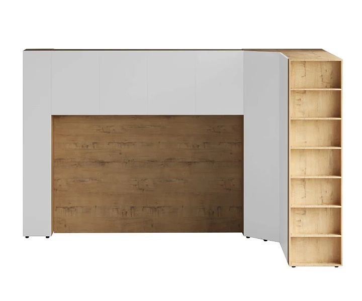 Линейка корпусной мебели, которая закрывает большинство потребностей по хранению и организации вещей. Универсальные и функциональные шкафы, тумбы, стеллажи, столы группируются по функциональны зонам. С их помощью можно обустроить прихожую, гостиную, кабинет, спальню, детскую. В основе дизайна — софт-минимализм с продуманными деталями и материалами. Скрытые механизмы открытия дверей, естественная древесная текстура, большая вместительность, белый цвет делают их исключительно удачными для большинства современных пространств. Гладкие фасады без декора и ручек поддерживают идею отказа от визуального шума, двери открываются по принципу «нажал-открыл». Мебель Modus создает уравновешенный интерьер с выразительными компонентами, настраивающими на ритмичный образ жизни, целеустремленность и чувство свободы от избыточных деталей. Кроватный блок предназначен для использования совместно с кроватью или диваном. Блок имеет два отделения за откидными дверьми и открытую полку над ними. Двери открываются за кромку, с помощью газовых кронштейнов. Кроватный блок оснащен светодиодным светильником, расположенным на открытой верхней полке. Светильник представляет собой алюминиевый профиль с матовым экраном, внутри которого установлена светодиодная лента. С левой и с правой стороны переднего щита блока установлены выключатели светильника и эл. розетки с разъемами USB А и Type C. Блок установлен на регулируемые опоры. Внутренние размеры отделений для хранения: 1160х850х260мм каждое отделение. Максимальная нагрузка на верхнюю полку не должна превышать 20 кг. Панель представляет собой щит из ЛДСП 16 мм. предназначенный для установки над кроватным блоком. Панель навешивается на регулируемые подвесы. Шкаф имеет три регулируемых подвеса для навешивания на стену. Полки имеют возможность перестановки по высоте в трех уровнях. Дверь открывается по принципу «нажал-открыл». Максимальная нагрузка на каждую полку не должна превышать 7 кг. Пенал Modus состоит из корпуса и фасада. Корпус с проходным нижним и верхним щитом установлен на опоры. Опоры регулируемые, пластик черный, круглые. Корпус горизонтальной стенкой разделен на два отделения по высоте. Верхнее отделение оснащено одной съёмной полкой, нижнее – пятью съёмными полками. Полки 6 – съемные, с перестановкой по высоте в 3 положения. Максимальная нагрузка на одну полку не должна превышать 4кг. Фасад представляет собой распашную дверь, которая открывается по принципу «нажал-открыл». Установка двери возможна с открыванием как в левую, так и в правую сторону.