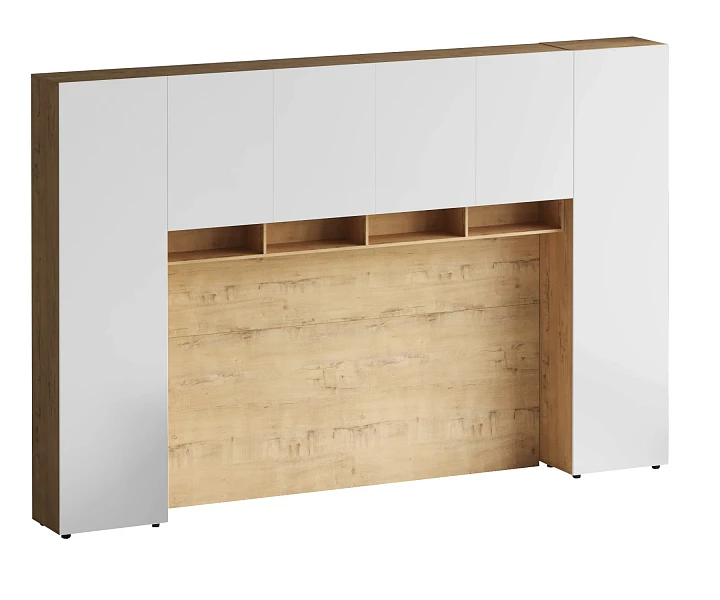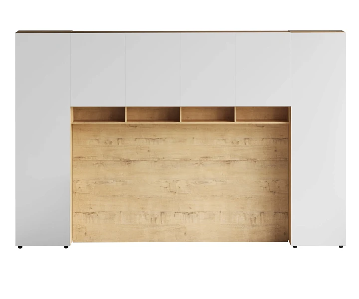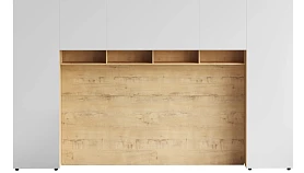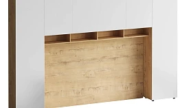 Линейка корпусной мебели, которая закрывает большинство потребностей по хранению и организации вещей. Универсальные и функциональные шкафы, тумбы, стеллажи, столы группируются по функциональны зонам. С их помощью можно обустроить прихожую, гостиную, кабинет, спальню, детскую. В основе дизайна — софт-минимализм с продуманными деталями и материалами. Скрытые механизмы открытия дверей, естественная древесная текстура, большая вместительность, белый цвет делают их исключительно удачными для большинства современных пространств. Гладкие фасады без декора и ручек поддерживают идею отказа от визуального шума, двери открываются по принципу «нажал-открыл». Мебель Modus создает уравновешенный интерьер с выразительными компонентами, настраивающими на ритмичный образ жизни, целеустремленность и чувство свободы от избыточных деталей. Кроватный блок предназначен для использования совместно с кроватью или диваном. Блок имеет два отделения за откидными дверьми и открытую полку над ними. Двери открываются за кромку, с помощью газовых кронштейнов. Кроватный блок оснащен светодиодным светильником, расположенным на открытой верхней полке. Светильник представляет собой алюминиевый профиль с матовым экраном, внутри которого установлена светодиодная лента. С левой и с правой стороны переднего щита блока установлены выключатели светильника и эл. розетки с разъемами USB А и Type C. Блок установлен на регулируемые опоры. Внутренние размеры отделений для хранения: 1160х850х260мм каждое отделение. Максимальная нагрузка на верхнюю полку не должна превышать 20 кг. Панель представляет собой щит из ЛДСП 16 мм. предназначенный для установки над кроватным блоком. Панель навешивается на регулируемые подвесы. Шкаф имеет три регулируемых подвеса для навешивания на стену. Полки имеют возможность перестановки по высоте в трех уровнях. Дверь открывается по принципу «нажал-открыл». Максимальная нагрузка на каждую полку не должна превышать 7 кг. Диван входит в стоимость.