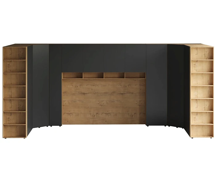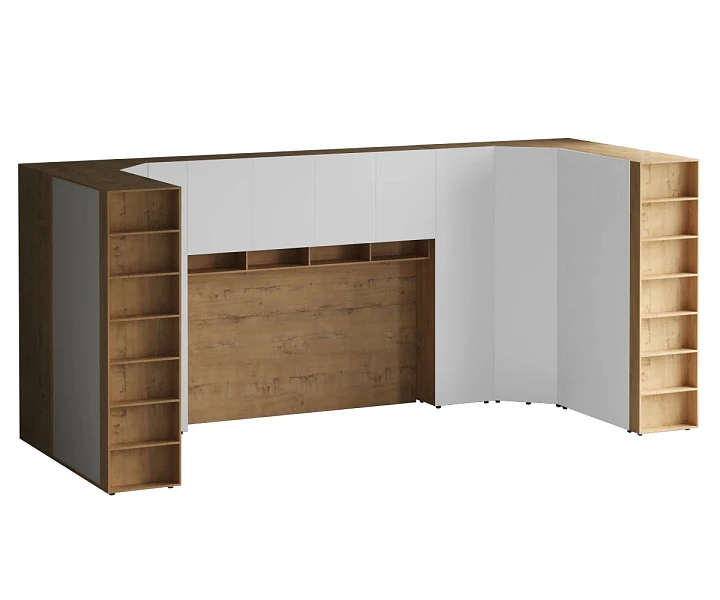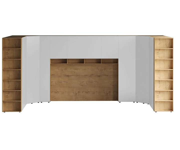 Линейка корпусной мебели, которая закрывает большинство потребностей по хранению и организации вещей. Универсальные и функциональные шкафы, тумбы, стеллажи, столы группируются по функциональны зонам. С их помощью можно обустроить прихожую, гостиную, кабинет, спальню, детскую. В основе дизайна — софт-минимализм с продуманными деталями и материалами. Скрытые механизмы открытия дверей, естественная древесная текстура, большая вместительность, белый цвет делают их исключительно удачными для большинства современных пространств. Гладкие фасады без декора и ручек поддерживают идею отказа от визуального шума, двери открываются по принципу «нажал-открыл». Мебель Modus создает уравновешенный интерьер с выразительными компонентами, настраивающими на ритмичный образ жизни, целеустремленность и чувство свободы от избыточных деталей. Кроватный блок предназначен для использования совместно с кроватью или диваном. Блок имеет два отделения за откидными дверьми и открытую полку над ними. Двери открываются за кромку, с помощью газовых кронштейнов. Кроватный блок оснащен светодиодным светильником, расположенным на открытой верхней полке. Светильник представляет собой алюминиевый профиль с матовым экраном, внутри которого установлена светодиодная лента. С левой и с правой стороны переднего щита блока установлены выключатели светильника и эл. розетки с разъемами USB А и Type C. Блок установлен на регулируемые опоры. Внутренние размеры отделений для хранения: 1160х850х260мм каждое отделение. Максимальная нагрузка на верхнюю полку не должна превышать 20 кг. Панель представляет собой щит из ЛДСП 16 мм. предназначенный для установки над кроватным блоком. Панель навешивается на регулируемые подвесы. Шкаф имеет три регулируемых подвеса для навешивания на стену. Полки имеют возможность перестановки по высоте в трех уровнях. Дверь открывается по принципу «нажал-открыл». Максимальная нагрузка на каждую полку не должна превышать 7 кг. Пенал Modus состоит из корпуса и фасада. Корпус с проходным нижним и верхним щитом установлен на опоры. Опоры регулируемые, пластик черный, круглые. Корпус горизонтальной стенкой разделен на два отделения по высоте. Верхнее отделение оснащено одной съёмной полкой, нижнее – пятью съёмными полками. Полки 6 – съемные, с перестановкой по высоте в 3 положения. Максимальная нагрузка на одну полку не должна превышать 4кг. Фасад представляет собой распашную дверь, которая открывается по принципу «нажал-открыл». Установка двери возможна с открыванием как в левую, так и в правую сторону.