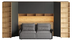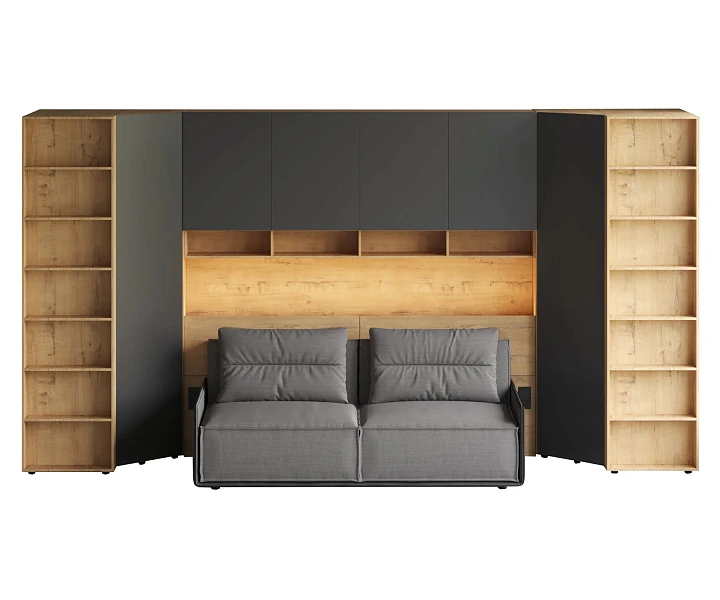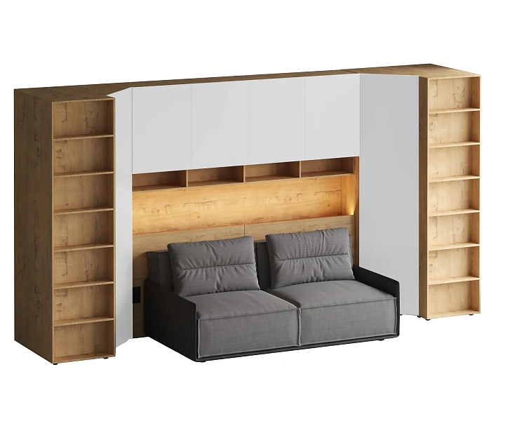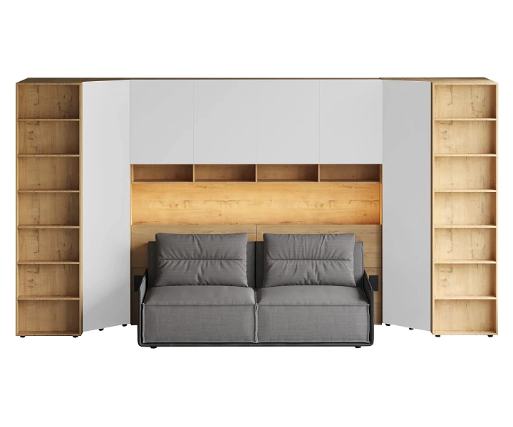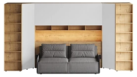 Линейка корпусной мебели, которая закрывает большинство потребностей по хранению и организации вещей. Универсальные и функциональные шкафы, тумбы, стеллажи, столы группируются по функциональны зонам. С их помощью можно обустроить прихожую, гостиную, кабинет, спальню, детскую. В основе дизайна — софт-минимализм с продуманными деталями и материалами. Скрытые механизмы открытия дверей, естественная древесная текстура, большая вместительность, белый цвет делают их исключительно удачными для большинства современных пространств. Гладкие фасады без декора и ручек поддерживают идею отказа от визуального шума, двери открываются по принципу «нажал-открыл». Мебель Modus создает уравновешенный интерьер с выразительными компонентами, настраивающими на ритмичный образ жизни, целеустремленность и чувство свободы от избыточных деталей. Кроватный блок предназначен для использования совместно с кроватью или диваном. Блок имеет два отделения за откидными дверьми и открытую полку над ними. Двери открываются за кромку, с помощью газовых кронштейнов. Кроватный блок оснащен светодиодным светильником, расположенным на открытой верхней полке. Светильник представляет собой алюминиевый профиль с матовым экраном, внутри которого установлена светодиодная лента. С левой и с правой стороны переднего щита блока установлены выключатели светильника и эл. розетки с разъемами USB А и Type C. Блок установлен на регулируемые опоры. Внутренние размеры отделений для хранения: 1160х850х260мм каждое отделение. Максимальная нагрузка на верхнюю полку не должна превышать 20 кг. Панель представляет собой щит из ЛДСП 16 мм. предназначенный для установки над кроватным блоком. Панель навешивается на регулируемые подвесы. Шкаф имеет три регулируемых подвеса для навешивания на стену. Полки имеют возможность перестановки по высоте в трех уровнях. Дверь открывается по принципу «нажал-открыл». Максимальная нагрузка на каждую полку не должна превышать 7 кг. Пенал Modus состоит из корпуса и фасада. Корпус с проходным нижним и верхним щитом установлен на опоры. Опоры регулируемые, пластик черный, круглые. Корпус горизонтальной стенкой разделен на два отделения по высоте. Верхнее отделение оснащено одной съёмной полкой, нижнее – пятью съёмными полками. Полки 6 – съемные, с перестановкой по высоте в 3 положения. Максимальная нагрузка на одну полку не должна превышать 4кг. Фасад представляет собой распашную дверь, которая открывается по принципу «нажал-открыл». Установка двери возможна с открыванием как в левую, так и в правую сторону.