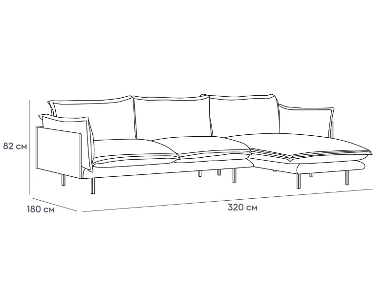 Металлические опоры дивана обеспечивают устойчивость, они окрашены черной матовой эмалью. А также снабжены пластиковыми подпятниками и сохраняют напольное покрытие от царапин.