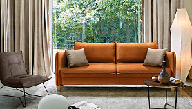 Благодаря широкой палитре оттенков обивки вы можете сделать диван-кровать центром гостиной либо расставить акценты в комнате посредством ярких аксессуаров. Хотите добавить красочных цветов? Контрастный оттенок декоративных подушек, которые идут с диваном в комплекте, создаст нужное настроение. Декоративный кант по контуру сиденья, боковин и приспинных подушек придает дивану изюминку, а пиковка с пуговицами на боковинах делает «образ» завершенным. Диван трехместный, который не оставит равнодушным ни одного ценителя современного стиля.