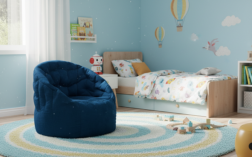 Мобильное и мягкое кресло легко транспортировать из одного помещения в другое. Эта модель подходит для комфортного отдыха и нравится детям.