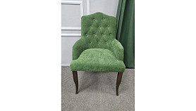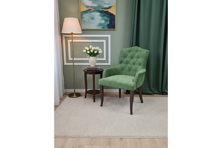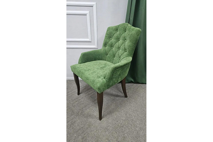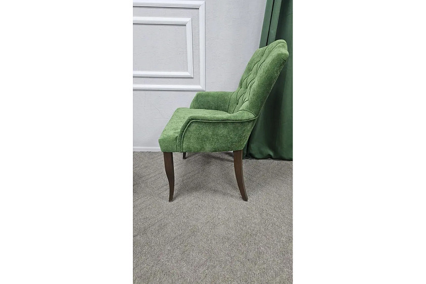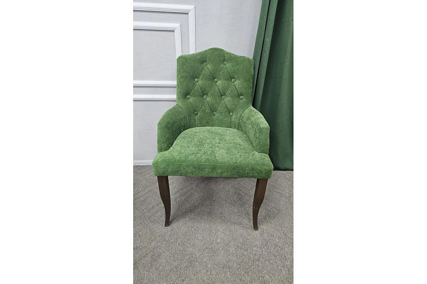 Элегантное кресло с характером — идеальный акцент для современного интерьера. Мягкая велюровая обивка в благородном зеленом оттенке придаёт уют и глубину пространству, а каретная стяжка добавляет ощущение премиальности. Удобная посадка, поддержка спины и изящные деревянные ножки делают его не только стильным, но и практичным выбором для гостиной, спальни или зоны отдыха.