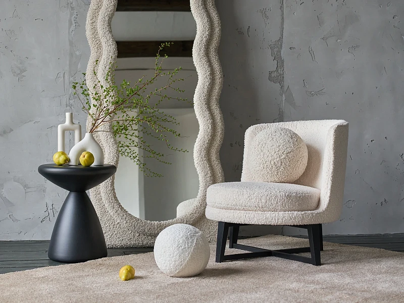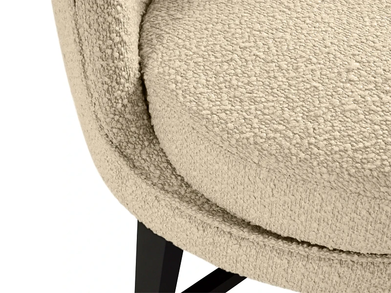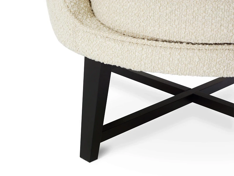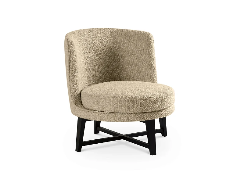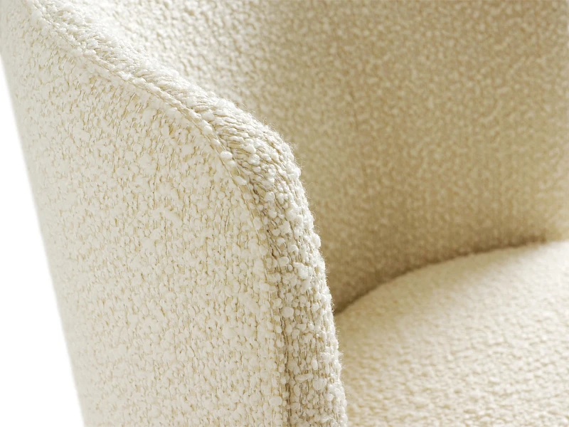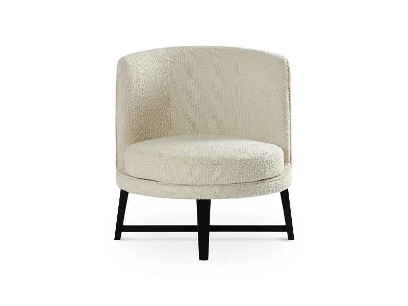Кресло Onore очаровывает плавным силуэтом и лаконичным дизайном. Прямые граненые ножки из дерева невысоко приподнимают круглое сиденье с полукруглой спинкой. Симбиоз форм создает простой и выразительный силуэт, рождающий чувство спокойствия, умиротворения. «Обнимающая» спинка отвечает за защиту и уединение. Фактурная обивка букле придает мягкости, уюта, тепла.Кресло Onore подходит для оформления городской квартиры, студии, загородного дома, офиса, кафе, отеля. Эстетично впишется в гостиную с настроением неоклассики, сканди, минимализма, украсит спальню, детскую, кабинет, составит изящную пару журнальному или косметическому столику, дивану, пуфу, банкетке и подарит вам бесценные часы комфортного отдыха.