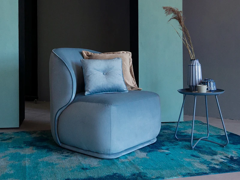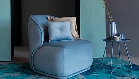 Кресло Ribera выделяется скульптурной архитектурой с акцентами на объёмах и изгибах. Эти детали создают простой, спокойный, но выразительный силуэт. Который рождает чувство защищенности, обеспечивая необходимую степень уединения. Широкая «обнимающая» спинка плавно соединяется с пышным комфортным сиденьем. Мягкие обволакивающие формы придают объёмной конструкции лёгкости, движения, романтического очарования. Декоративное оформление кантом гармонично дополняет внешний вид кресла.