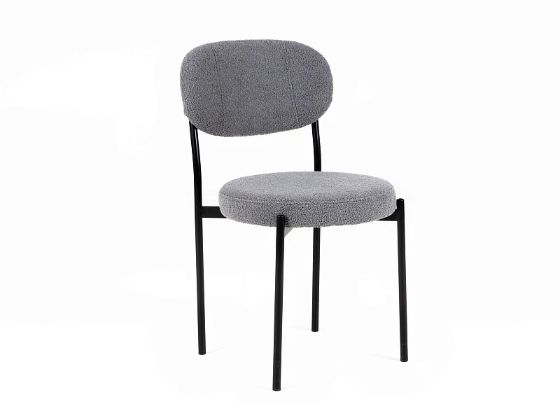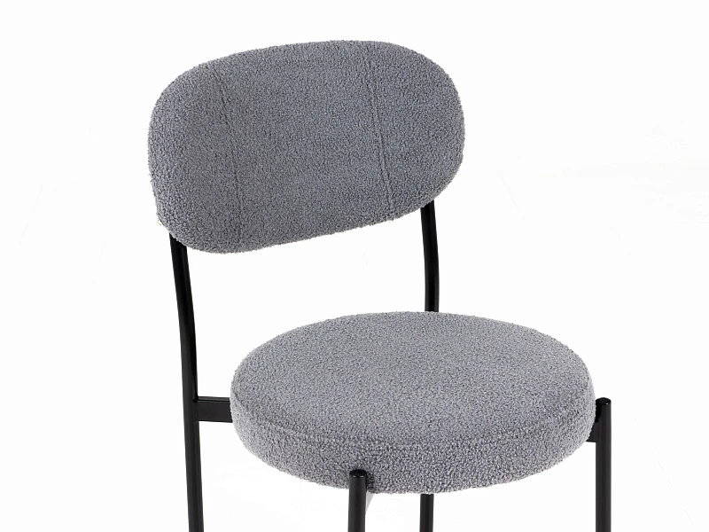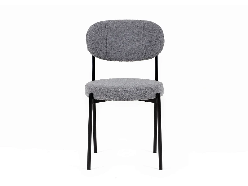 Материал обивки - искусственный мех. Прочный металлический каркас. Металлические опоры черного матового цвета. На опорах предусмотрены защитные пластиковые накладки, которые придают стулу дополнительную устойчивость и защищают пол от царапин.