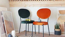 Мягкий кухонный стул Noemi подойдёт тем, кто ценит комфорт во всех его проявлениях, в том числе и за обеденным столом. Удобная конструкция стула позволяет разместиться на нём и ребёнку, и взрослому. Каркас и ножки металлические черного цвета, выдерживают большую нагрузку. Наличие подпятников предохраняющих от царапания пола. Спинка даёт возможность сохранить удобное положение тела во время обеда. Сиденье и спинка обиты прочным и ярким велюром, в качестве наполнителя используется плотный и упругий поролон. Модель представлена в зелёном, оранжевом, бирюзовом, желтом, коричневом и белом вариантах.