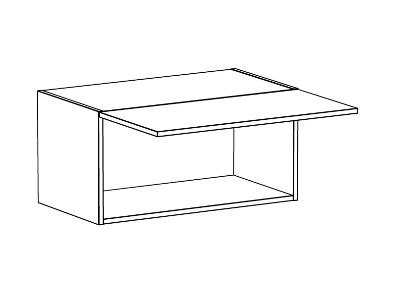 Антресоль Modus состоит из корпуса и фасада. Корпус с проходными стенками вертикальными навешивается на стену. Фасад представляет собой дверь, которая открывается вверх по принципу «нажал-открыл». Дверь снабжена газовыми лифтами.