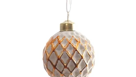 Новогоднее украшение Шар изготовлено из тонкого и прочного стекла, что делает его легким и удобным для подвешивания на елку. Благодаря специальной технике исполнения, изделие красиво переливается на свету. Шар будет прекрасно смотреться на елках любого стиля, придавая им ощущение волшебства и зимней красоты.