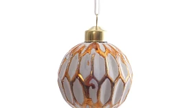 Новогоднее украшение Шар изготовлено из тонкого и прочного стекла, что делает его легким и удобным для подвешивания на елку. Благодаря специальной технике исполнения, изделие красиво переливается на свету. Шар будет прекрасно смотреться на елках любого стиля, придавая им ощущение волшебства и зимней красоты.