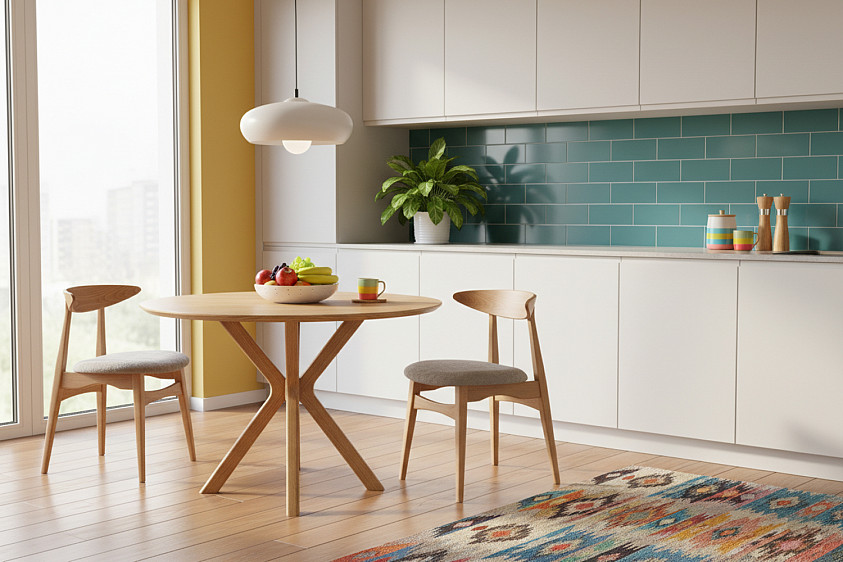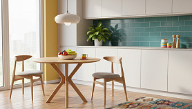 Стильный круглый стол с раскладным механизмом — идеальное решение для современной кухни или столовой. Лаконичный дизайн и выразительное основание придают модели лёгкость и характер, а натуральная текстура дерева создаёт ощущение уюта и тепла. Благодаря удобному раскладному механизму стол легко увеличивается в размере, позволяя с комфортом разместить гостей. Компактный в повседневной жизни — просторный в особые моменты. Практичность и эстетика в одном решении.