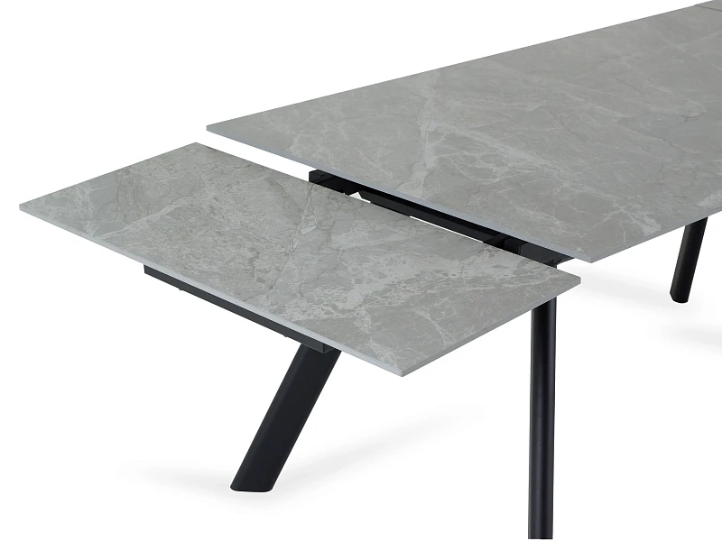 Раскладной обеденный стол Bronte — выразительная комбинация минимализма и элегантности. Сдержанный силуэт поддержит комфорт в обеденной зоне, гостиной, студии, на кухне. Прямоугольную столешницу из керамики поддерживают четыре металлические опоры. Выразительные ножки с гранями добавляют строгости и ритмичности. И при этом контрастируют с утонченными линиями столешницы.