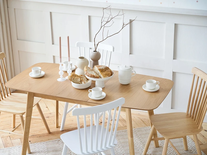 Обеденный стол Wave подойдет для кухни и столовой, его можно установить на летней террасе или в беседке. Он действительно универсален. Столешница выполнена из МДФ с дубовым шпоном. Ножки из цельного каучукового дерева. Раздвижной механизм дает возможность увеличить полезную площадь стола, что позволяет использовать его для приема гостей. Актуально на все времена.