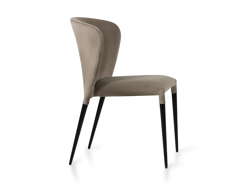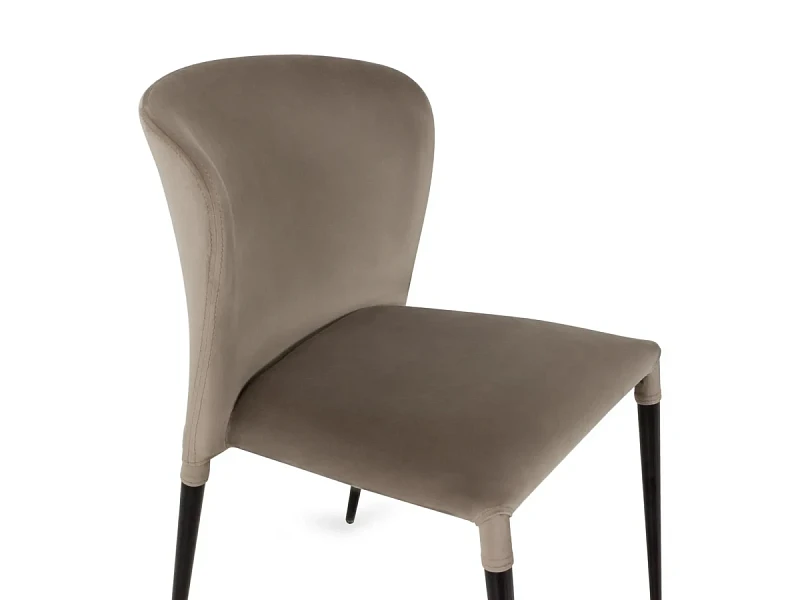 Стул на металлических опорах черного матового цвета. На опорах предусмотрены защитные пластиковые накладки, защищающие пол от царапин. Металлический каркас. Ткань велюр. Наполнение: формованный высокопрочный пенополиуретан.