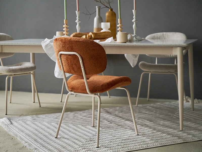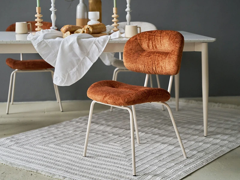 Комфортный стул играет воздушной архитектурой, плавными формами. Сочетание качественных материалов, адаптационного дизайна и эргономичности позволяет подстроить его для разных задач. Стильный стул послужит вам за рабочим или обеденным столом. В гостиной, спальне, прихожей, офисе, бизнес-пространстве. Вы без труда можете поменять его локацию. Крепкие ножки из металла смотрятся легко и изящно. Конструкция даёт поддержку корпусу и комфортную посадку. Мягкая обивка выполнена из износостойкого шенилла. Ворсистая ткань приятна на ощупь, выглядит благородно, поддержит ощущение уюта, тепла. Универсальная модель гармонично впишется как в пространство с минималистичным настроением, так и в локацию с ярким характером. Подходит для небольших помещений, где важно экономить площадь. Материал обивки - шенилл, материал ножек - металл с кремовым порошковым покрытием. На ножках предусмотрены специальные подпятники, которые предотвращают скольжение и повреждения напольного покрытия. Требуется сборка. Размер упаковки: 54х52х79 см.