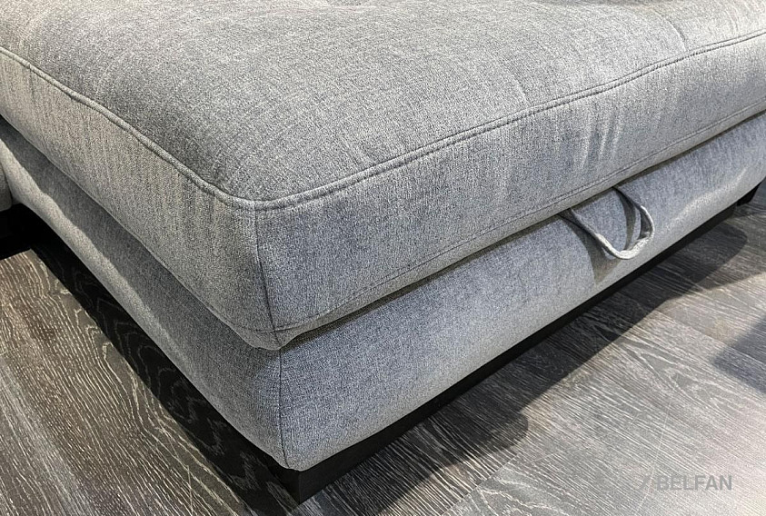 ? С помощью скрытого ремня диван выдвигается вперед до полного раскладывания – передняя часть тянет за собой все остальные части и ставятся на выезжающие ножки.
