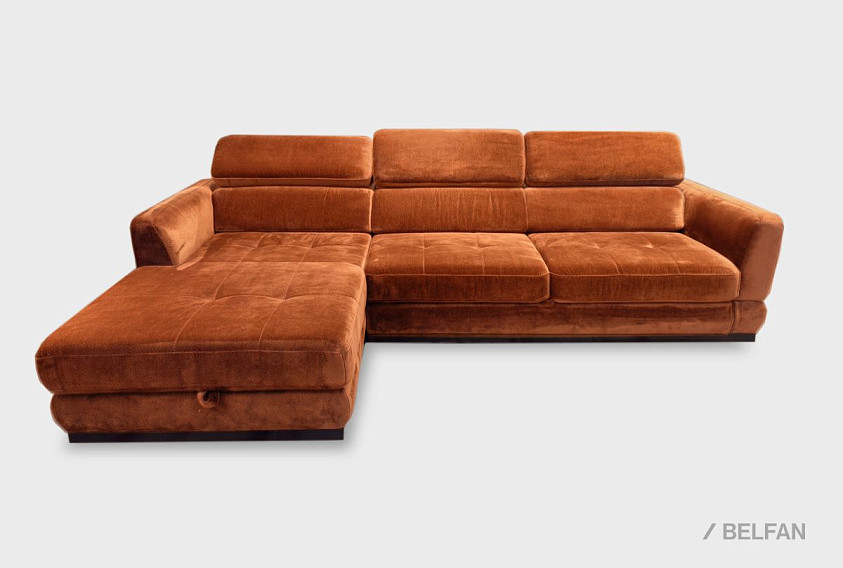 Сдержанность и респектабельность – отличительная черта коллекции мягкой мебели «Орландо». Наличие пиковки втяжками и декоративных швов на сиденье выполняют не только декоративную функцию, но и практичную – утяжки фиксируют слои наполнителя и защищают его от растяжения, что увеличивает срок службы дивана. Регулируемые подголовники дают возможность выбирать наиболее оптимальный вариант поддержки головы. Диван-кровать оснащен впередвыкатным механизмом трансформации для ежедневного использования. При его раскладке не нужно убирать подушки сиденья, что очень удобно. По периметру дивана располагается деревянный декоративный пояс, который добавляет дизайну фундаментальности, а также защищает нижний край царги от загрязнений ткани. Диван угловой возможно сделать в ткани и натуральной коже.