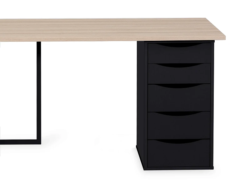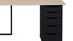 Для большого количества техники, канцелярии, специального оборудования подойдут просторные столешницы с большими стеллажами, а для ноутбука и блокнота достаточно компактного стола, который не займет много места. Архитектура предметов максимально простая, смотрится легко и не загромождает пространство. Материал столешниц — ЛДСП, основание — металл. Качественные и надежные материалы гармонично вписывается в большинство актуальных интерьерных стилей. Тумбы на регулируемых ножках. Ящики на роликовых направляющих. Фасады без ручек, с фигурной выемкой для открывания за кромку. К вашему выбору —большое количество сочетаний столешниц и оснований, стеллажей, тумб, что позволяет создать комбинацию, максимально отвечающую индивидуальным потребностям.