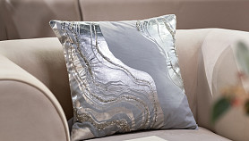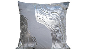 70SW-35150 Подушка с принтом и бисером "Фолио" серый 45*45