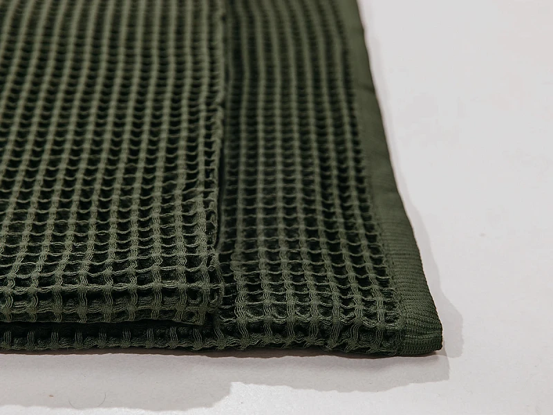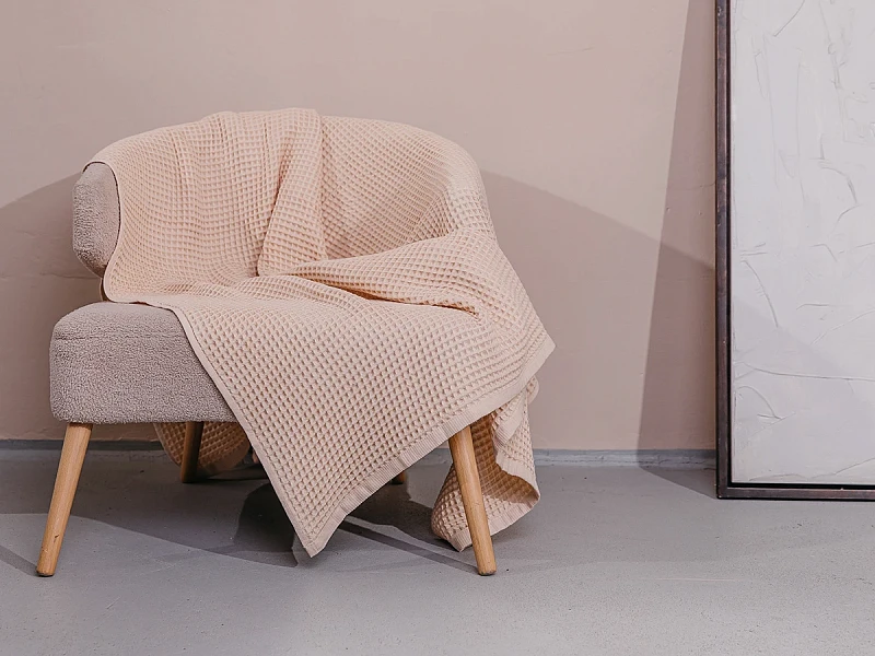 Благодаря натуральному составу – хлопок 100%, изделие гипоаллергенно, подходит для чувствительной кожи, приятно на ощупь, сохраняет тепло, также натуральный хлопок придает пледу прочность, сохраняя форму изделия! Тип ткани - вафельное полотно, плотностью 430 г/м2.