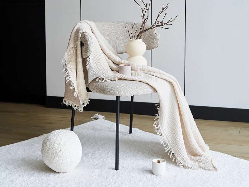 Тонкий и одновременно теплый, хлопковый плед универсален, он незаменим как в летний и зимний, так и демисезонные периоды: осенний и весенний. Такое трикотажное покрывало служит отличным home декором для дома и дачи. Нежные оттенки пледа накидки позволят преобразить любой интерьер, гармонично вписавшись в окружающую обстановку. Универсальный размер 130х170 см, можно использовать как покрывало на односпальную кровать, а также как стильный домашний плед - накидку на угловой диван или кресло в гостиную.