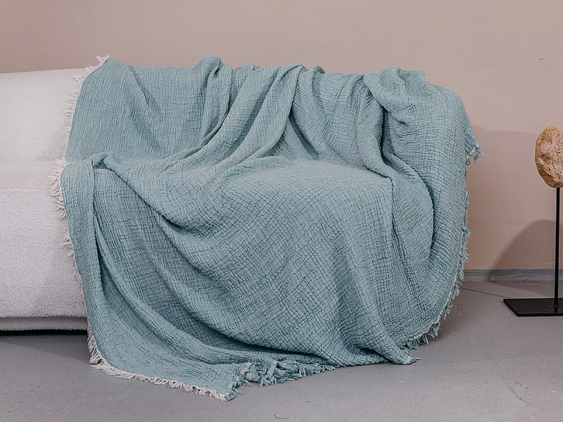 Уютный плед-покрывало в подарочной упаковке станет прекрасным украшением интерьера, а также подарит вам тепло и комфорт в любое время года дня и суток! Благодаря натуральному составу – хлопок 100%, изделие гипоаллергенно, подходит для чувствительной кожи, приятно на ощупь, сохраняет тепло, также натуральный хлопок придает пледу прочность, сохраняя форму изделия! Наш плед покрывало изготавливается из высококачественной пряжи, поэтому на нем не образуются катышки, он устойчив к выцветанию, не колется и не теряет свой внешний вид даже после многократных стирок. Тип сырья – натуральное растительное. Состав волокон - 100% хлопок (муслин). Количество базовых слоев - 4. Нашим хлопковым пледам подходит машинная стирка на деликатном режиме при температуре воды не выше +30 градусов С и отжим на низких оборотах не более 600! Стирка с кондиционером сделает его мягче, а сушка в разложенном виде поможет избежать растягивания. Изделие отлично впитывает влагу и отлично пропускает воздух, одеяло будет служить и согревать Вас вечерами долгие годы! Тонкий и одновременно теплый, хлопковый плед универсален, он незаменим как в летний и зимний, так и демисезонные периоды: осенний и весенний. Такое трикотажное покрывало служит отличным home декором для дома и дачи. Нежные оттенки пледа накидки позволят преобразить любой интерьер, гармонично вписавшись в окружающую обстановку. Универсальный размер 130х170 см, можно использовать как покрывало на односпальную кровать, а также как стильный домашний плед - накидку на угловой диван или кресло в гостиную. Наши пледы также отлично подойдут как чехол на диван, текстиль на кровать в спальню, поверх постельного белья, и как защитное покрывало на диван, предотвращая обивку. Кроме того, такая вещь отлично подойдет для создания уюта в детской комнате, как детский плед для новорожденных. Им можно укрыться и согреться. С ним очень удобно смотреть фильмы или читать. Изделие может использоваться не только в доме. Размер упаковки: 16*35*16 см.