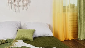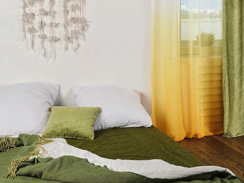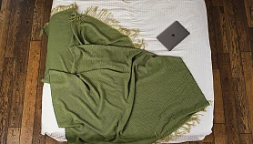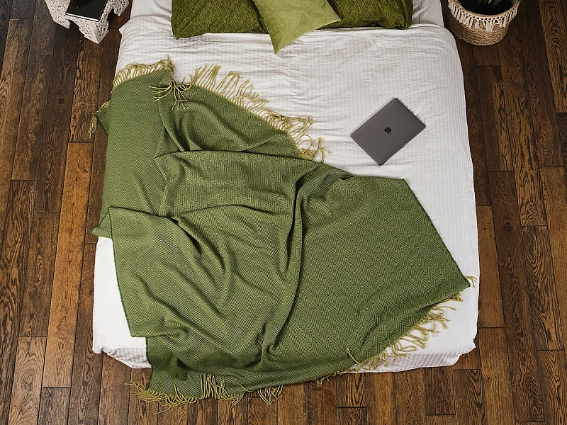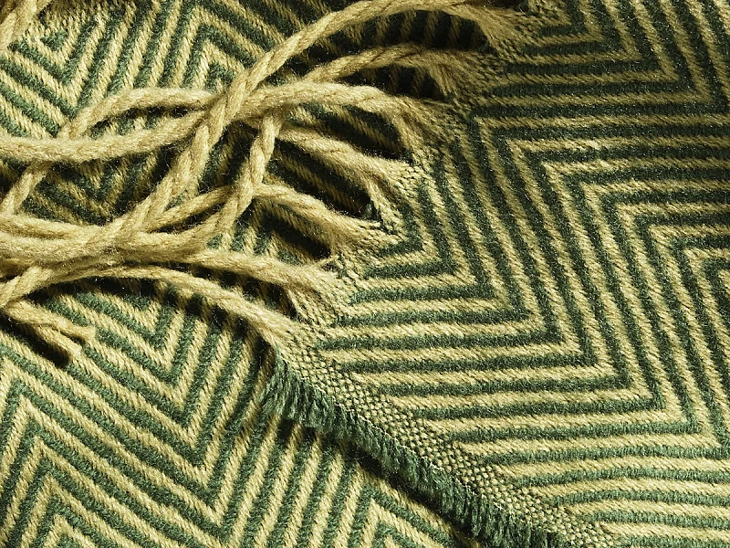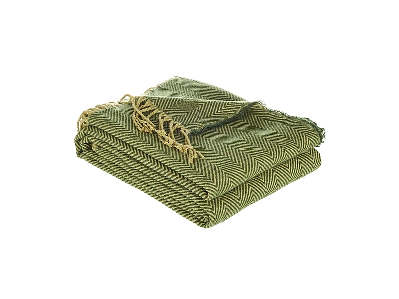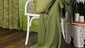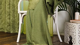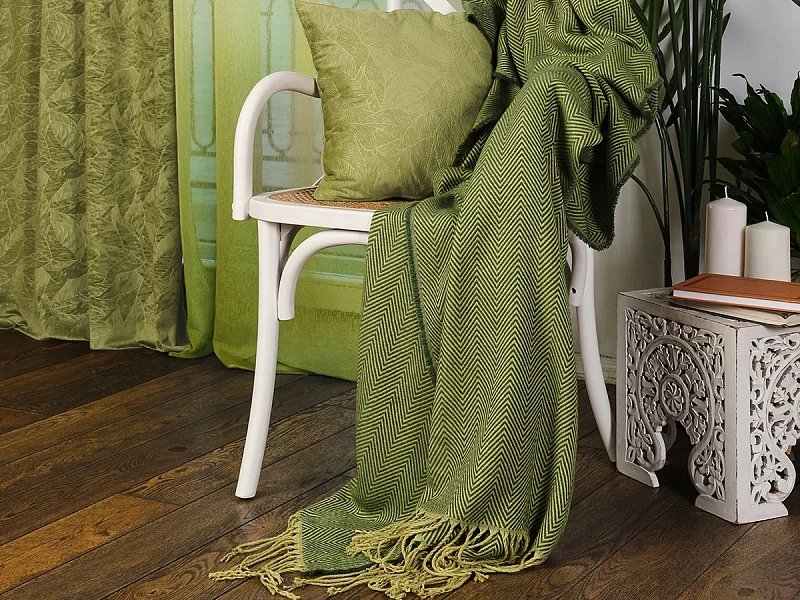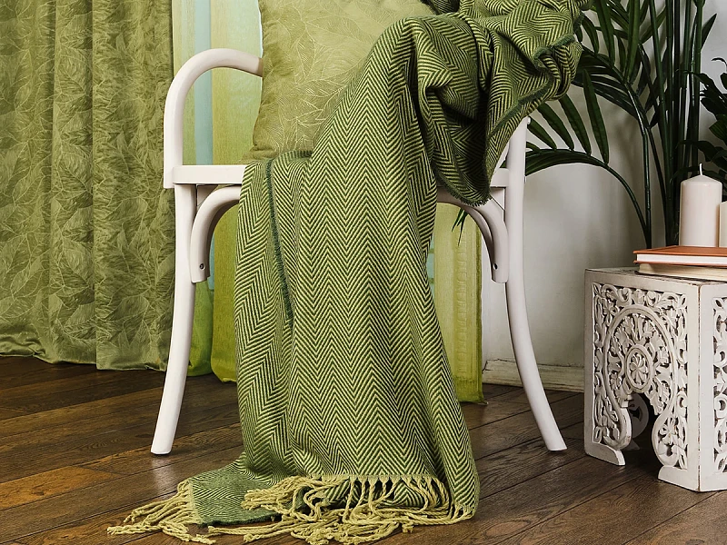 Жаккардовый плед 140x180 см Narassvete с желто-зеленым орнаментом «елочка» и декоративными кисточками. Нежная фактура пледа подарит тепло и приятные тактильные ощущения. Полиэстер в составе делает изделие долговечным и устойчивым к частым стиркам.