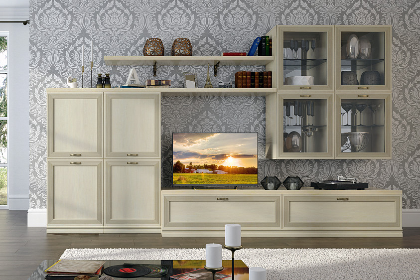Полку можно навешивать как между модулями, так и отдельно на стену;