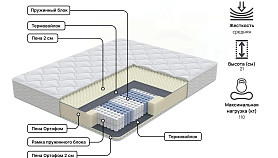 Ренди матрас универсальной средней жесткости. В основе матраса пружинный блок 500, который имеет 7 зон комфорта для оптимальной поддержки всех участков тела спящего. За счет особой структуры поверхности пены в комфортном слое матраса, создается микромассажный эффект, способствующий расслаблению мышц. Дополнительную мягкость матрасу придает трикотажный чехол, простеганный на объемном волокне и эластичном материале Ортофом.