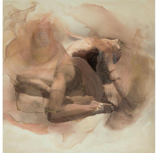 89VOR-AQUARELLE25 Холст "Объятия страсти" 100*100см,багет дерев.