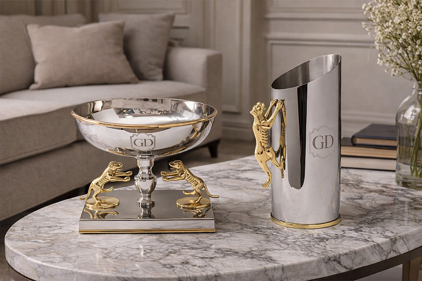 95IM-16542S Чаша "Леопарды" н/ж цвет хром 25*19*20см