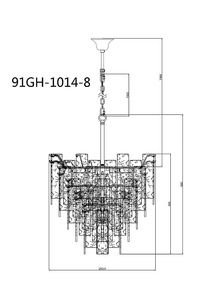 91GH-1014-8 Люстра потолочная "Ice" рифленое стекло/латунь d.53см h.68см