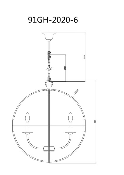 91GH-2020-6 Лампа потолочная Сфера латунь/черный d.56см h.60см