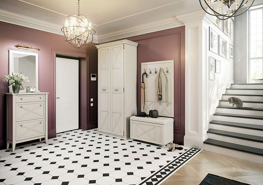 • Мебель Кантри украсит легкий классический интерьер прихожей;